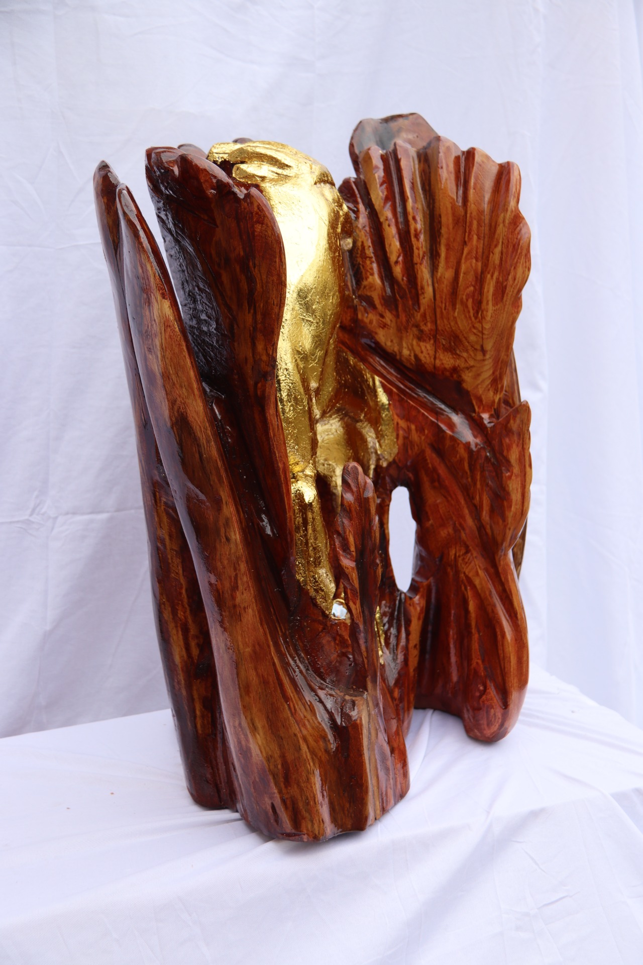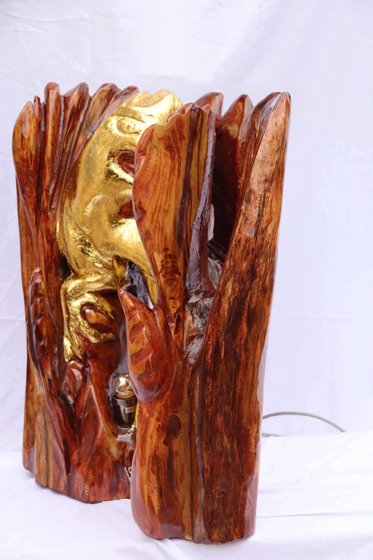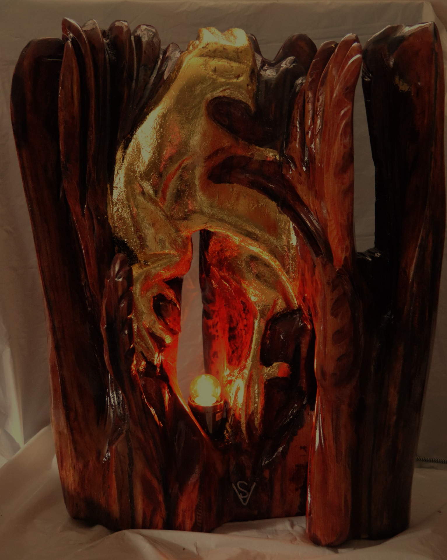 Bájný pták ohnivák, je socha, lampa vyrobena z masivního akátu tónovaná lazurou s třešňovým nádechem. Samotné tělo ptáka, je potaženo plátkovým zlatem. Vše ošetřeno kvalitním lodním lakem.