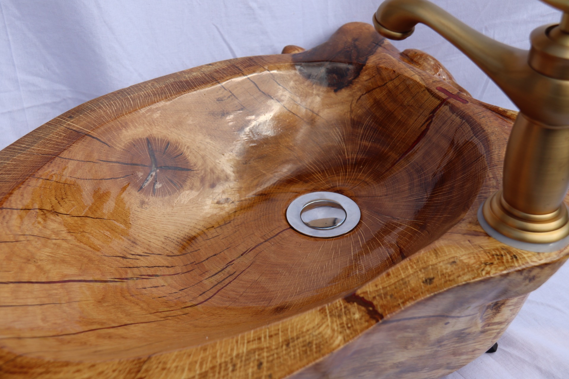 Umyvadlo z masivního buku v rozměru šířka 73 cm, Výška 18 cm/22 cm se stojanem, Hloubka 38 cm, váha 12,3 kg. Vyrobeno z kvalitního buku, impregnováno. Praskliny vyplněny litou pryskyřicí. Konečná úprava provedena lodním lakem pro zvýraznění nádherné struktury buku a pro dlouhou životnost. ze strany plastika mořských pan