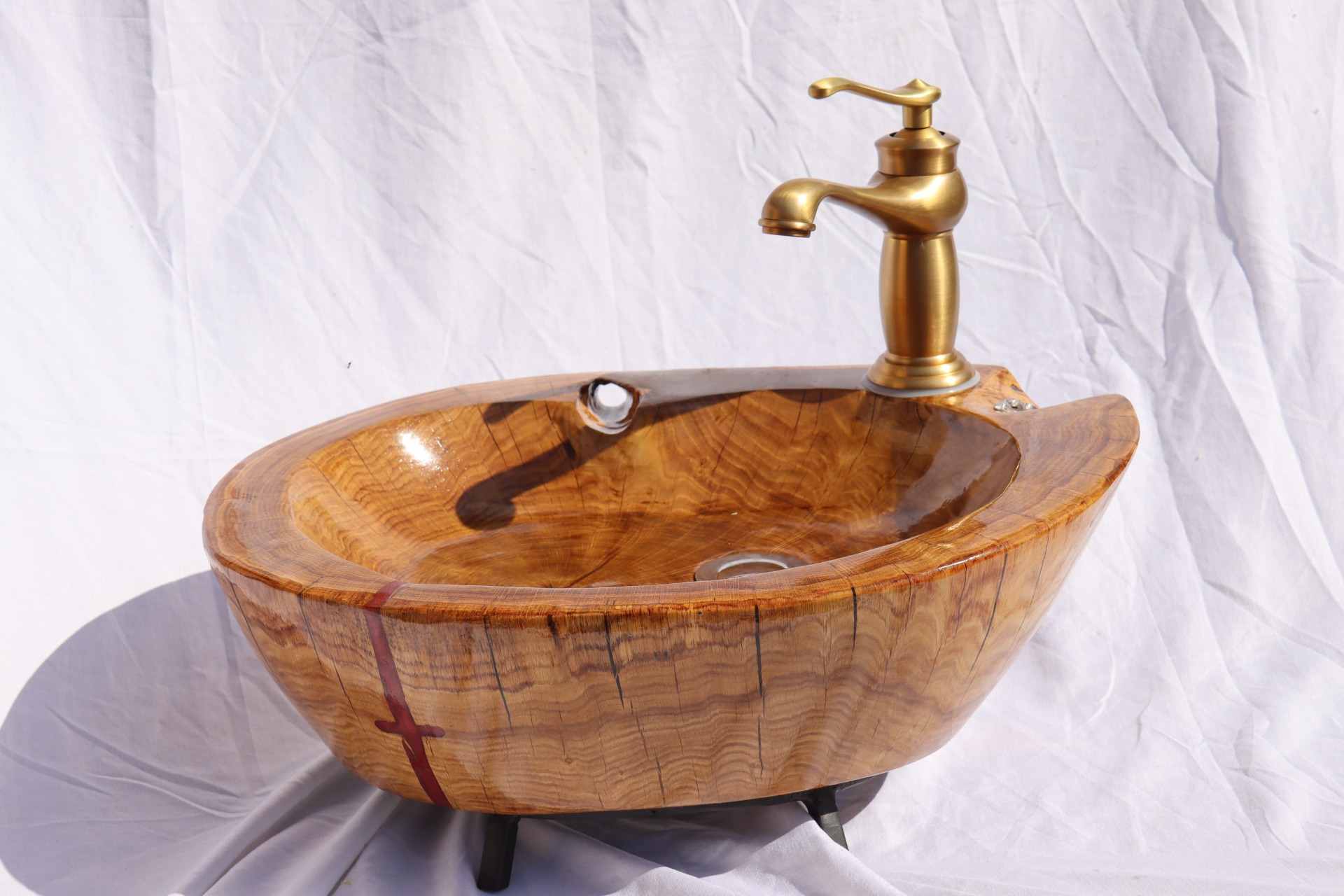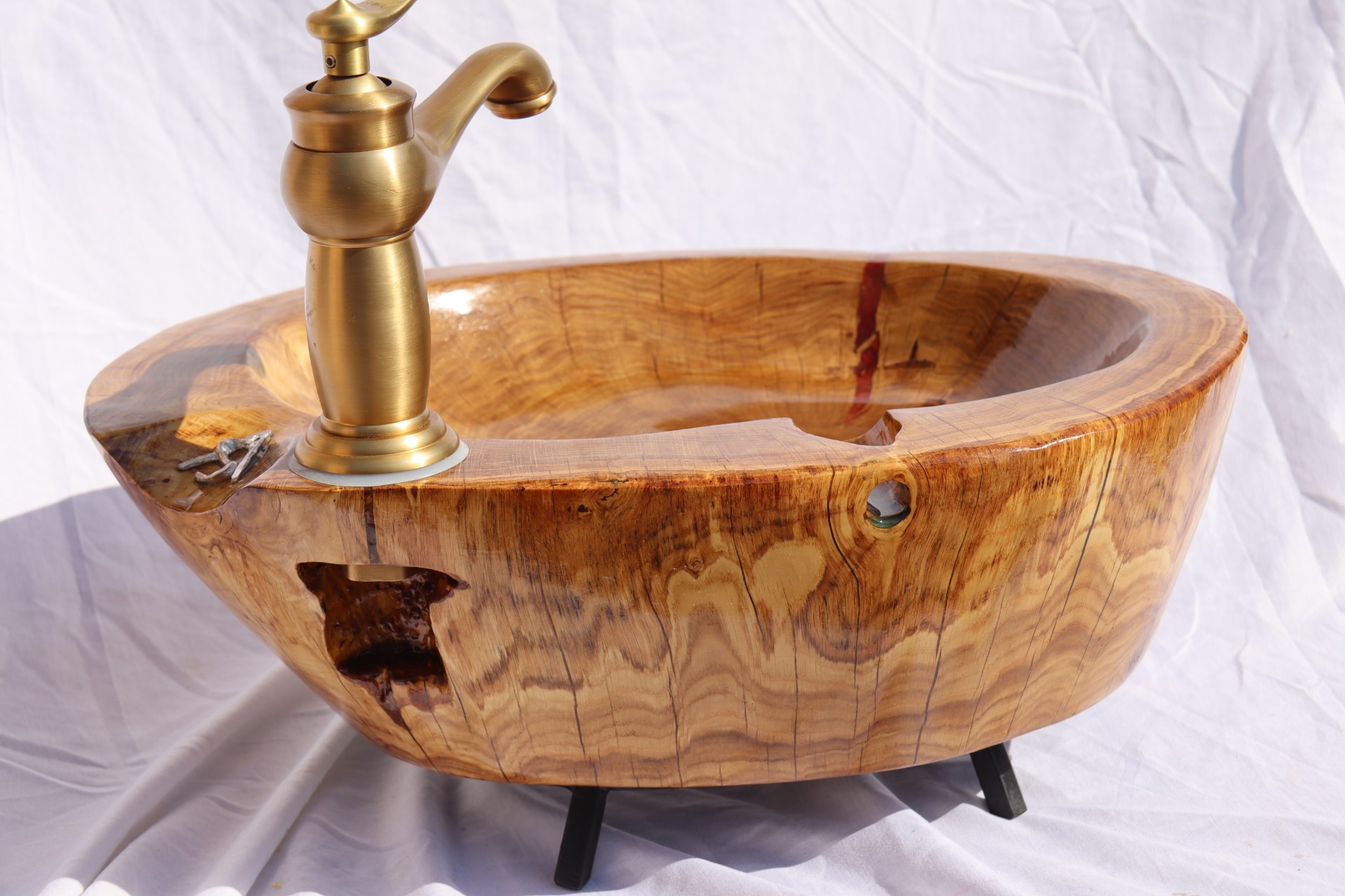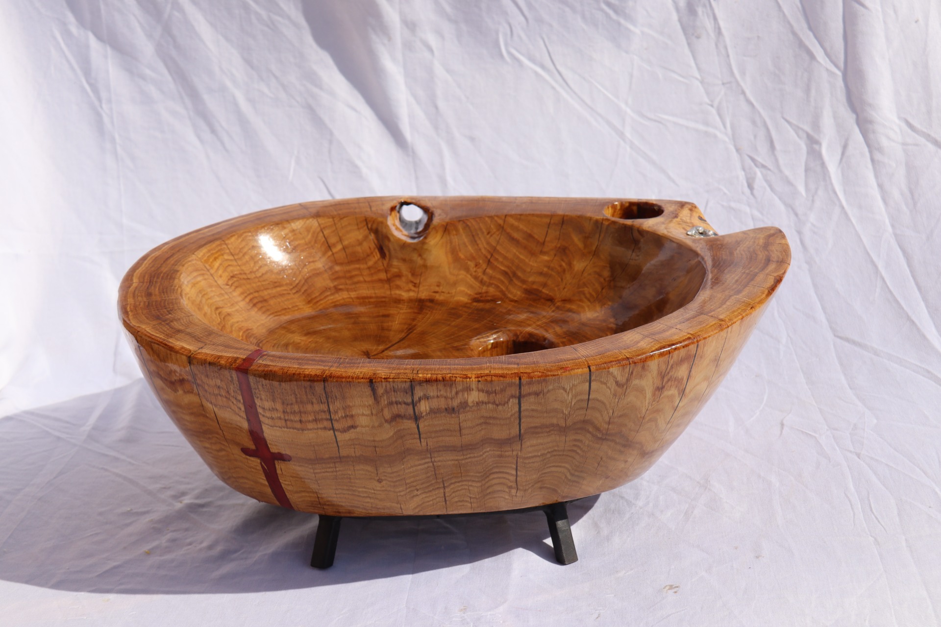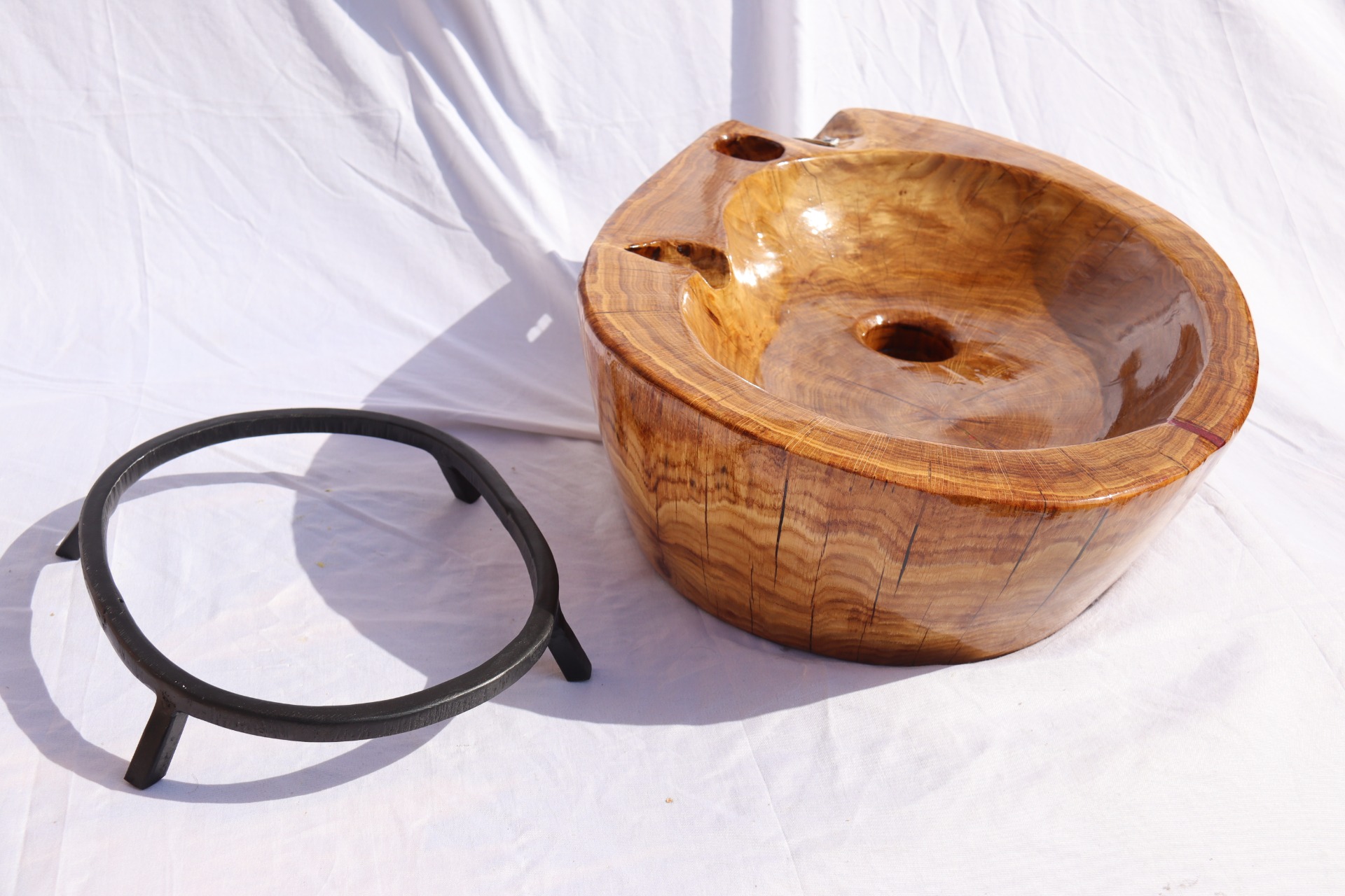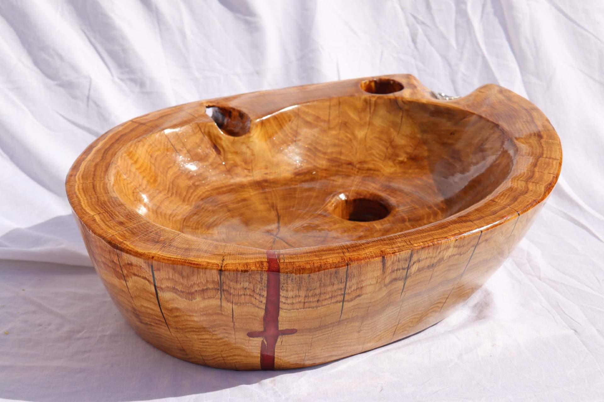 Umyvadlo z masivního Dubu v rozměru šířka 49 cm, Výška 14 cm/19 cm se stojanem, Hloubka 37 cm, Váha 4.5 kg